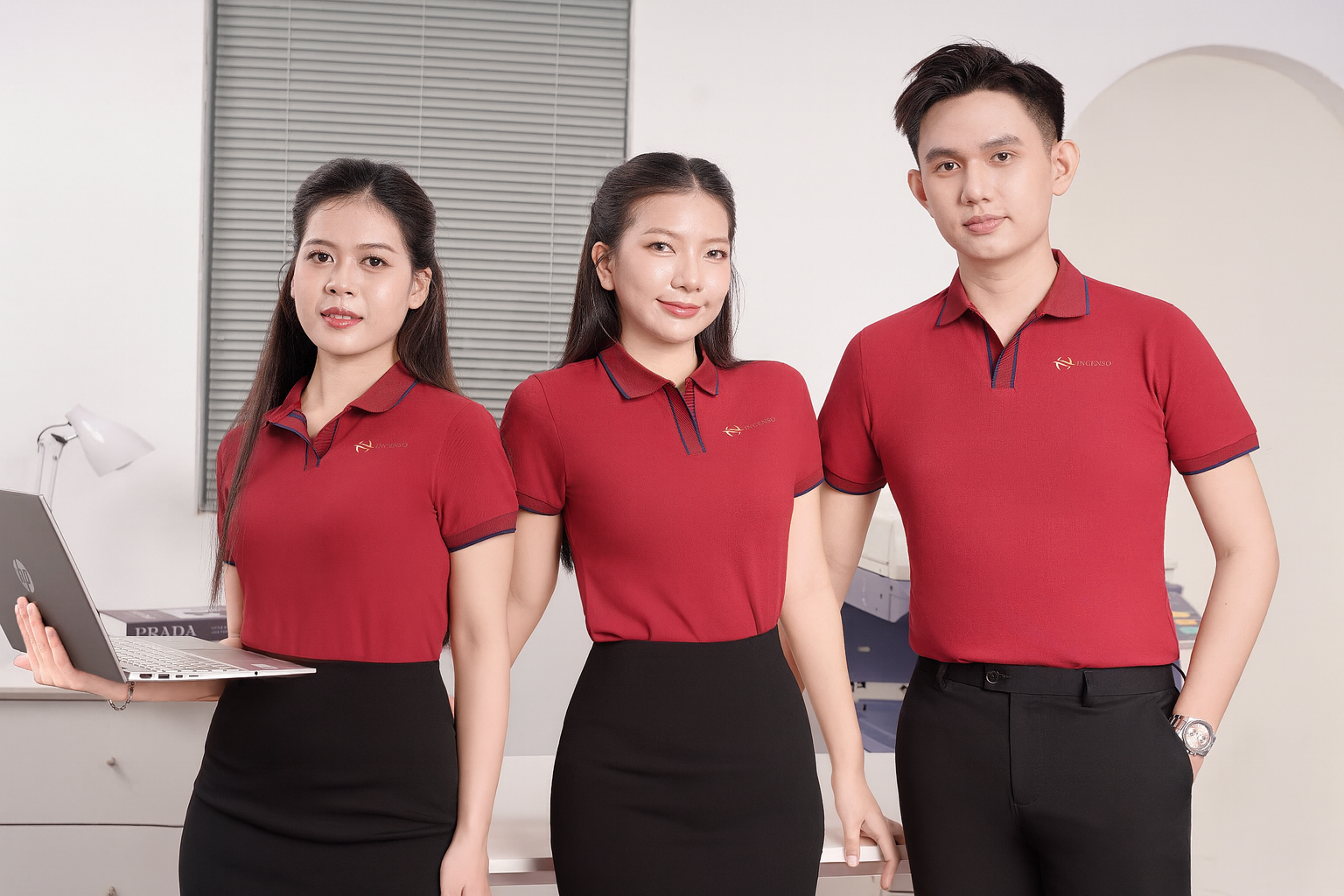 Màu đỏ đô không quá rực rỡ như đỏ tươi nhưng lại mang nét quý phái, đầy năng lượng. Đây là tông màu đồng phục công sở đẹp dành cho những thương hiệu muốn khẳng định sự mạnh mẽ và vị thế dẫn đầu.